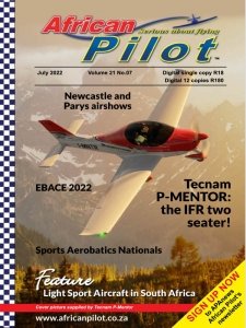 African Pilot is a niche market specialist aviation magazine that has been publishing uninterrupted for the past fourteen years. Subscribers to the magazine can expect glossy layouts with a modern ‘coffee table’ look featuring South African, African and world aviation events, interesting facts about aviation, historical features and general aviation news.