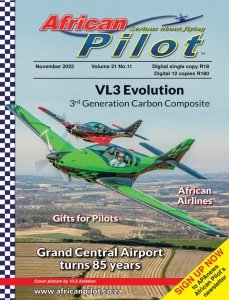 African Pilot is a niche market specialist aviation magazine that has been publishing uninterrupted for the past fourteen years. Subscribers to the magazine can expect glossy layouts with a modern ‘coffee table’ look featuring South African, African and world aviation events, interesting facts about aviation, historical features and general aviation news.