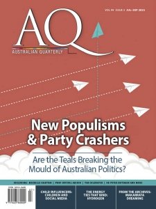 For over 85 years AQ: Australian Quarterly has been packing its pages with the country’s most distinguished and passionate thinkers, tackling the big issues in science, politics and society. With longer-style articles written by those at the forefront of the debates, AQ is unique in bridging the gap between journal and magazine, combining the compelling writing of a glossy with the intellectual rigour of a journal. If it matters to Australia then it matters to AQ.