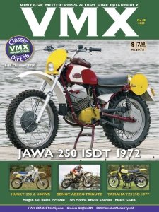 VMX Magazine is the definitive magazine for Vintage and Classic Dirt Bike and Motocross enthusiasts worldwide. VMX provides a retrospective view of the Bikes, the Events and the People that featured in the formative days of off-road motorcycling and racing, as well as providing a focus for people currently involved in the Vintage Dirt Bike scene. No other magazine worldwide provides the depth of information and superb photography of the Dirt Bikes of the past as well as how to restore and race them today.