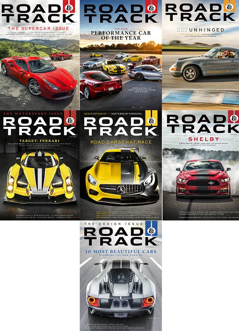 Road & Track includes technical features on automotive subjects, wide-ranging feature stories, spectacular automotive art and standard-setting new-car photography, humor, fiction, travel stories, book reviews and the most comprehensive racing coverage offered by a monthly magazine.