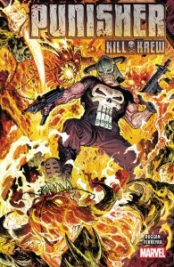 Punisher Kill Krew (TPB) (2020) : The War of the Realms may be over — but for the Punisher, the conflict never ends! To combat Malekith’s invasion, Frank Castle raised his own personal army. And now, in the war’s aftermath, they have some scores to settle! The Punisher has stolen Thor’s flying goat and is traversing the Ten Realms on a mission. But why is his first stop – Counter-Earth?! Frank made a promise of vengeance — and he keeps his promises. But a van full of orphans is about to make that vow a lot more complicated. And while Frank has picked up some unlikely allies, can he keep them alive? Featuring the Black Knight, Foggy Nelson and more in an action epic unlike anything you’ve ever seen. One Krew. Ten Realms. All-out war! Collects Punisher Kill Krew (2019) #1-5, material from War of the Realms: Omega (2019) #1.