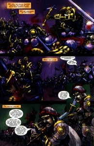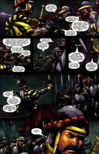 Warhammer – Forge of War #1 – 5 (2007-2008) : From the wind-scoured North they’ve come: THE HORDES OF CHAOS, ruthless warriors raised in battle and fanatically devoted to their dark gods. On a hundred-mile front across the Northern fringes of the Empire, the defenses of man and his dwarf allies are crumbling, fear threatens to become panic, and the blood of martyrs runs ankle-deep. Here begins the hopeless quest of a ramshackle band led by a mere Greatsword Sergeant – if, of course, they don’t kill each other first…