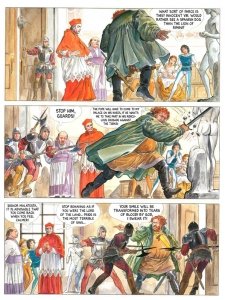 Borgia #1 – 4 (2005-2010) : When Pope Innocent VIII dies, the corrupt, licentious Cardinal Rodrigo Borgia schemes, murders, and seduces his way into becoming the new pope, immediately securing positions for his family and thereby ensuring a Borgia dynasty. With breathtakingly beautiful painted artwork by Manara, this account of Italy’s first Mafia family by Chilean filmmaker Alejandro Jodorowsky is among comics’—and history’s—sexiest, most violent, and most engaging epics! All four chapters newly translated and collected in English for the first time.