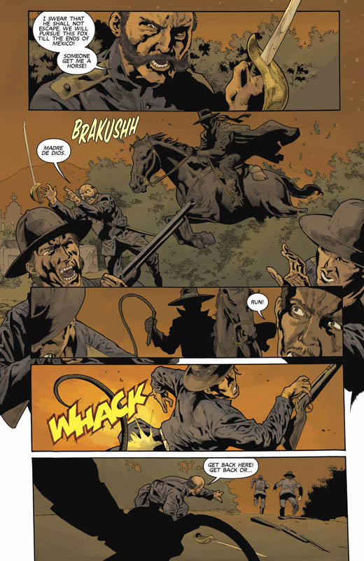 Lady Rawhide – Lady Zorro Vol. 1 – Outlaw Blood (TPB) (2016) : Drawn together in a scheme to fake the legendary Zorro’s death, the outlaws Lady Rawhide and Lady Zorro leap to action when they discover a far-reaching plot to abduct female villagers, children and adults alike, and sell them into bondage. To emancipate the girls from a fate worse than death, these masked women would ride into Hell itself… with such fury that the Devil would fear their coming! But with gangs of evil slavers, deadly natural elements, a cold-hearted madam, and a pack of frenzied wolves to contend with, will the valiant ladies survive the very worst that the lawless Californian wilderness has to offer?