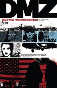 DMZ 5 Deluxe Books (2006-2015) : Follow the adventures of Matty Roth as he desperately tries to escape a war-torn New York City. Will he get the scoop or will he get killed? America is in the midst of a second civil war. Manhattan island has become the demilitarized zone between the Free States of America and the United States of America. In a series of single and multi-issue volumes we are introduced to fledgling journalist Matty Roth and the host of characters he interacts with during his stay in the DMZ. Roth is the glue that holds the narrative together but we learn the stories and perspectives of many who live in the shattered city. Behind them all is the conflict between the FSA, USA, and other factions as the country attempts to end the civil war.