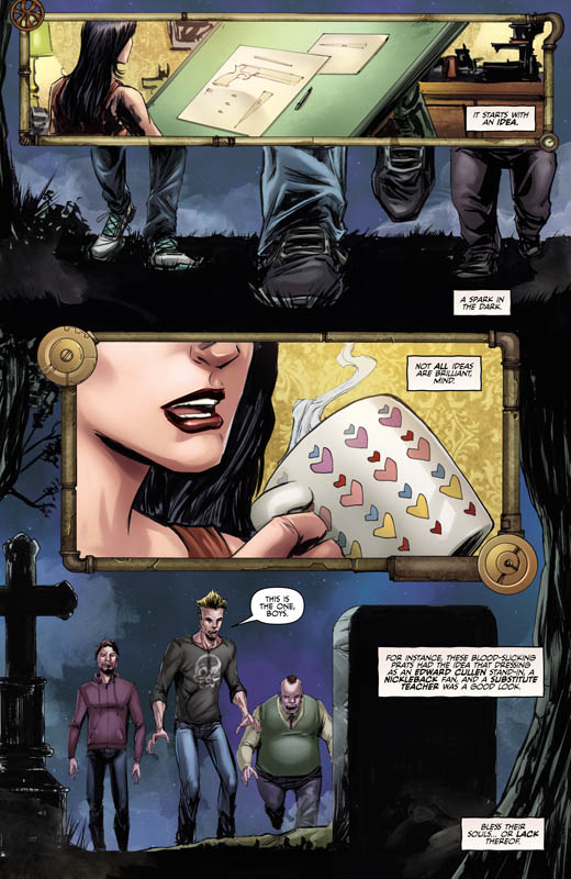 Grimm Fairy Tales presents Helsing – The Darkness and The Light (TPB) (2014) : Liesel Van Helsing’s life of hunting down vampires is shaken up when a mysterious package shows up at her door. Inside it is an old journal written by her father, the famed vampire hunter, Abraham Van Helsing. Desperate to find out who sent her the book, Liesel discovers a clue which leads her on a voyage to Europe. What she doesn’t know is that her journey is being manipulated by her father’s greatest nemesis. This 152 page trade paperback collects together Zenescope’s hit comic book series, Grimm Fairy Tales Helsing issues 1 through 4.