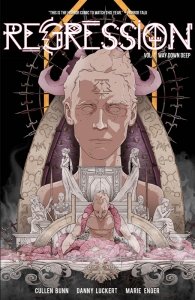 Regression Vol. 1 – Way Down Deep (TPB) (2017) : Plagued by ghastly waking nightmares, Adrian reluctantly agrees to past-life regression hypnotherapy. As his consciousness is cast back through time, Adrian witnesses a scene of horrific debauchery and diabolism. Waking, he is more unsettled than before, and with good reason—something has followed him back. Adrian descends into a world of occult conspiracy, mystery, reincarnation, and insanity from which there is no escape. CULLEN BUNN (Harrow County, The Sixth Gun, The Empty Man), DANNY LUCKERT (Haunted), and MARIE ENGER (Pistolwhip, 2 Sisters) present a tale of supernatural terror and intrigue unlike any horror comic you’ve ever experienced.