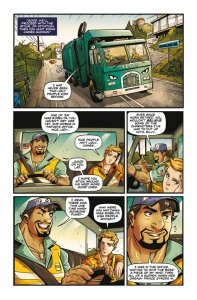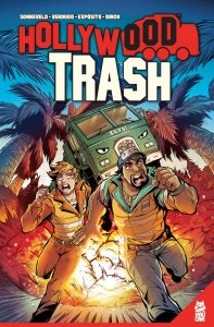 Hollywood Trash Vol. 1 (TPB) (2021) : Ah, Hollywood! Famous for celebs, sun…and murder cults! The Privy Council is the most exclusive club in town, headed by the entertainment industry’s top mogul, a ruthless exec who enlists his famous underlings to kill the people who stole from him, two local garbage men. James and Billy must survive one epic day of sword fights, forest fires, and giant mechs! At least there’s hazard pay. Collects issues #1-5.