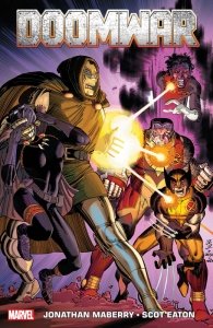 Doomwar (TPB) (2014) : Wakanda has been conquered, its Vibranium reserves plundered. Storm faces execution in the next 48 hours. And Dr. Doom stands triumphant. It will take the combined forces of the X-Men, the Fantastic Four and the two Black Panthers to stand against him. A war has begun that will pit the world’s most relentless super villain against a collection of the world’s most powerful super heroes–one that will span the globe, offering twists and turns and surprise players (hello Deadpool!) that neither side will see coming. Collects Doomwar #1-6.