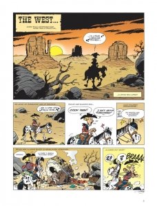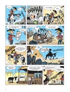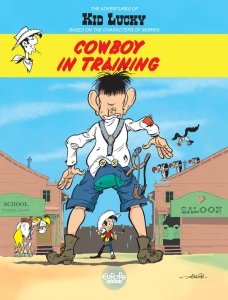 The Adventures of Kid Lucky Vol. 1 – 4 (2017-2019) : He’s got a yellow shirt and a red neckerchief, unruly locks and a sprig of grass in his mouth. He maintains law and order at the Nothing Gulch School, and he runs faster than his shadow as soon as there’s even the slightest hint of chores to be done. It’s Kid Lucky, a young cowboy knee-high to a grasshopper, always ready to discover the customs of the Wild West, and, most of all, to muck about with his buddies. This is the birth of a legend: the greatest (but still quite small) cowboy of the Wild West! In this first album, Kid Lucky learns his very first cowboy lessons.