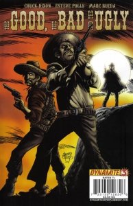 The Good, The Bad And The Ugly #1 – 8 (2009-2010) : From the classic movie, the Good, The Bad, and The Ugly! The Man with No Name rides again, this time under the veteran hand of writer Chuck (G.I.Joe) Dixon in a brand-new Dynamite #1! Featuring incredible art by Esteve Polls, and iconic covers by Lone Ranger artist Sergio Cariello, Zorro artist Francesco Francavilla and Wolverine Noir artist Dennis Calero, Dixon tells the tale of “DEAD MAN’S HAND” in a five part arc that continues the strong direction Dynamite’s westerns are known for!