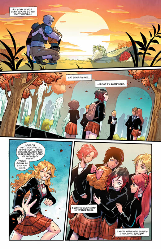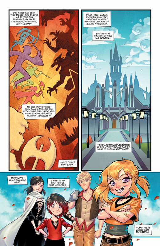RWBY (TPB) (2020) : In a world rife with monsters known as Grimm, the prestigious Beacon Academy trains the next generation of hunters. Tying in with the hit Rooster Teeth web series RWBY, follow the adventures of team RWBY, comprising bruiser Yang Xiao Long, elegant Weiss Schnee, stealthy Blake Belladonna, and courageous leader Ruby Rose as they protect the world from all manner of Grimm! Collects RWBY #1-7.