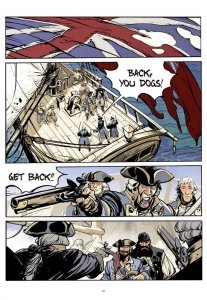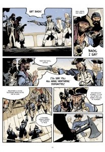 Republic of the Skull Part 1 (2022) : The dashing Captain Sylla plies the Caribbean with his close-knit crew: The Marquis, a former slave who sports a powdered periwig; the clever, craggy-faced Dutch; the burly, bearded Lenoir; and first mate Olivier, given to gloom and considered a bringer of bad luck. This is likely because he spends his time composing log entries addressed to a fictive British “Commodore” who will someday capture them. But perhaps he is the only clear-eyed one among them: luckless outcasts of imperial navies, these pirates’ days of freedom and fraternity are numbered, as the forces of law, order, and capital bear down on them.