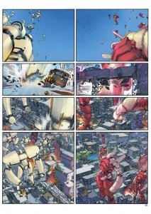 Meka #1 – 4 (2014) : A massive battle between skyscraping giant robots leaves two pilots stranded in their vehicle after is incapacitated in combat. Trapped inside the giant metal corpse, their situation turns desperate…