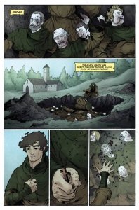 Plague #1 – 5 (2017-2018) : When the King of the Fey dies from the Black Plague, his angry young heir, Twylyth Tegg, vows to save his people by any means necessary. That same night, we meet our hero, Robb Aubert, a fearful friar of the Jedburgh Forest who has lost his faith and fellow friars to the dreaded plague. Driven by a mysterious note from the German Bishop of Hildesheim, Friar Robb is about to catch the last boat leaving the English Isles for the mainland when he crosses paths with an injured English Fairy – Danann Atreyu – a fey girl who has just lost her family to the infamous Black Cross, the Warbishop Jean De Moray. But Moray is more than just a bloodthirsty tyrant, he’s a man haunted by the long-ago death of this baby brother and at war with himself over all he’s done in the name of God since. His dreaded Dyrewolves track Danann’s blood-trail to the gates of the abbey where Friar Robb has unwittingly taken her in. It seems Robb is harboring a magical creature – a crime punishable by death.