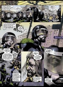 Dreadnoughts Book 1 – Breaking Ground (2021) : The year is 2035 and American society is crumbling, the police force become judge and jury, dispensing justice on the streets. Police brutality in response to public protests sparks even greater restrictions on what American citizens are free to do. This is the horror story of a descent into fascism and the beginnings of the world of Judge Dredd.