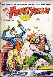 Funnyman #1 – 6 (1948) : The last creation of Superman creators Jerry Siegel & Joe Shuster, Funnyman was their attempt to catch lightning in a bottle a second time, appearing both in a comic from Magazine Enterprises and as a newspaper strip.
