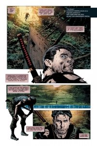 Bloodshot Reborn Deluxe Edition Book 1 (TPB) (2016) : Bloodshot’s nanites made him a nearly unstoppable killing machine. His enhanced strength, speed, endurance, and healing made him the perfect weapon, and he served his masters at Project Rising Spirit – a private contractor trafficking in violence – very well. Now, Bloodshot is a shadow of his former self. He lives in self-imposed exile, reeling from the consequences of his past life and the recent events that nearly drove him mad. But when a rash of shootings by gunmen who appear to look just like Bloodshot begin, his guilt will send him on a mission to stop the killers, even if it means diving head-long into the violence that nearly destroyed him. Collecting BLOODSHOT REBORN #1-13, BLOODSHOT REBORN #14–18, BLOODSHOT REBORN #0, BLOODSHOT REBORN 2016 ANNUAL, BOOK OF DEATH: THE FALL OF BLOODSHOT and 4001 A.D.: BLOODSHOT, along with 20+ pages of rarely seen art and extras!