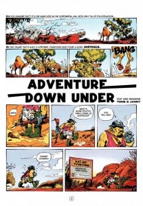 Spirou and Fantasio’s friend, the Count of Champignac, asks them to join him in Australia, where he has heard that an ancient monolith is still standing. When they arrive, Champignac’s colleague Walker Donahue informs them that Champignac has been abducted by local gangster Sam. The monolith they’re after stands in the vicinity of an aboriginal mining village, which is constantly prey to white prospectors trying to steal indigenous resources. Spirou and Fantasio must save Champignac from Sam’s clutches and help him find the legendary monolith while standing by the aboriginal people.