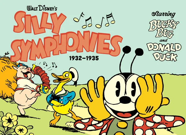 1932 saw the launch of Disney’s second-ever original comic strip, the full-color weekly Silly Symphonies, and with it came the debut of Bucky Bug, a daring, rhyming, mischievous squirt whose escapades took him from brutal birds of prey to the terrifying trenches of the Great Flyburg War! With his brave lady friend June and bumpkin pal Bo, Bucky even travels to a mixed-up Mother Goose Land… where a not-so-merry Old King Cole has mayhem on his mind! Now in this latest stand alone Disney reprint collection, readers can follow all of Bucky’s adventures and the Symphonies Sunday sagas that followed, which also includes Donald Duck’s debut as the barnyard’s spoilt brat in “The Wise Little Hen”… and further tales of golden age Silly Symphony cartoon stars: egotistical Max Hare, slow-but-sure Toby Tortoise, and that awful bandit Dirty Bill (who “never took a bath, and he never will!”).