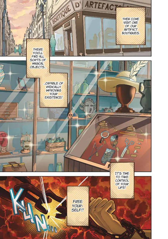 Sleep, work, commute... Aren't you fed up with this life? A life full of sacrifices, hard work... And for what? You deserve better! What if I told you that you could turn your life around? What would you want? A better job? To find the love of your life? Or to cure an incurable disease? Now anything is possible! Just drop into one of the many artifact stores in Paris. The magical objects they contain are the key to a radiant future.