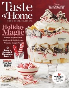 Taste of Home is an American cooking magazine that focuses mainly on Midwestern cuisine. The magazine publishes countless recipes, as well as tips and advice on different cooking techniques. Taste of Home is known well for the number of recipes that appear on its pages. The magazines staff practices recipe exchange and readers are welcome to send in their own recipes for publication. Published are recipes for each course, from appetizers and soups to main courses like Crown Roast Pork with Apple Cranberry Stuffing. Included are recipes that suit every cooking style and piece of equipment, from the slow cooker to the grill. Many of the recipes featured in Taste of Home are healthy, low in fat, or low in carbs. Also included are recipes from around the world, seasonal and holiday recipes, and recipes for those cooking on a budget.