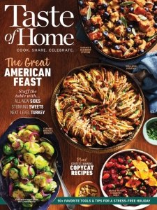 Taste of Home is an American cooking magazine that focuses mainly on Midwestern cuisine. The magazine publishes countless recipes, as well as tips and advice on different cooking techniques. Taste of Home is known well for the number of recipes that appear on its pages. The magazines staff practices recipe exchange and readers are welcome to send in their own recipes for publication. Published are recipes for each course, from appetizers and soups to main courses like Crown Roast Pork with Apple Cranberry Stuffing. Included are recipes that suit every cooking style and piece of equipment, from the slow cooker to the grill. Many of the recipes featured in Taste of Home are healthy, low in fat, or low in carbs. Also included are recipes from around the world, seasonal and holiday recipes, and recipes for those cooking on a budget.