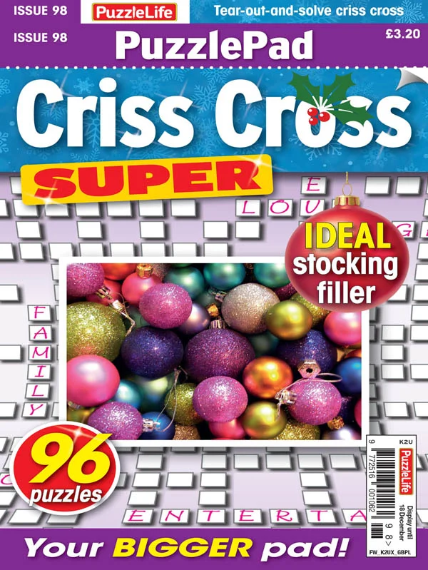 PuzzlePad Criss Cross Super It's an extended concept in puzzle pad range – a larger format of the chunky pad of puzzles that you can tear out and solve at your leisure. PuzzleLife PuzzlePad Criss Cross' 96 puzzles are crammed with a variety of criss crosses to keep you on your toes, making it just the thing for the puzzle fan who's on the move – or, of course, who fancies sitting down to solve a pad of puzzles!