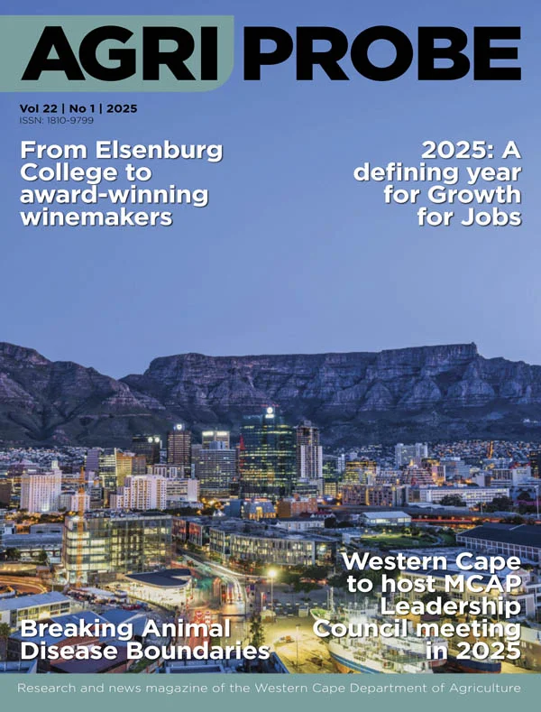 AgriProbe is a quarterly popular/semi-scientific magazine of the Western Cape Department of Agriculture. The magazine consists of two sections – one part popular agriculture related articles and another part research results in the form of semi-scientific articles, known as the Elsenburg Journal. All articles are written by employees of the Western Cape Department of Agriculture and in its popular section it covers articles ranging from events, news snippets, people on the move, human capital development, and economic news to 'taking our services out there'. The Elsenburg Journal comprises of semi-scientific articles focusing on research results in various disciplines.