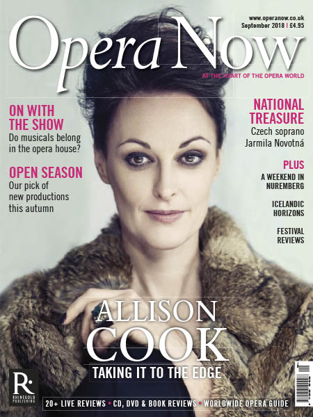 ***Scottish mezzo Allison Cook discusses her upcoming role debut as Strauss’ Salome at English National Opera; our pick of operatic highlights this autumn; and do musicals have a place in the opera house, or do they dilute the core operatic repertoire? Plus, award-winning American soprano Kelli O’Hara bridges the gap between opera and music theatre; versatile 20th-century Czech diva Jarmila Novotná; Icelandic composer Daníel Bjarnason makes his mark on the world stage with a new opera; a weekend in Nuremberg; and the dangers of engulfing opera in contemporary issues.***