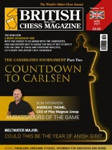 The BCM is the world’s oldest chess journal, having been published continuously since 1881. It appears twelve times per year, and each issue includes reports on recent tournaments, opening articles, interviews, instructional articles, etc, as well as regular features on chess problems and endgame studies. The magazine caters for players of all strengths.