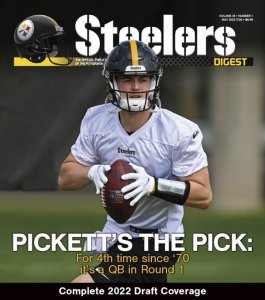 Steelers Digest is the official fan publication of the Pittsburgh Steelers. Each issue provides game previews, inside information, award-winning columns and features, and complete statistics. Steelers Digest is published 12 times a year, twice per month throughout the NFL regular season, playoffs and Super Bowl.