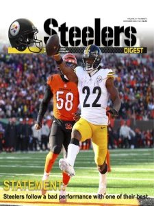 Steelers Digest is the official fan publication of the Pittsburgh Steelers. Each issue provides game previews, inside information, award-winning columns and features, and complete statistics. Steelers Digest is published 12 times a year, twice per month throughout the NFL regular season, playoffs and Super Bowl.