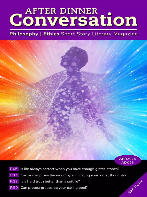 After Dinner Conversation publishes compelling “what if” scenarios of original philosophy and ethics short stories across genres with accompanying discussion questions for friends, family, and students. Imagine the “trolley problem” written as a short story! Topics include ethics, metaphysics, aesthetics, moral relativism, and political and economic philosophy among others.