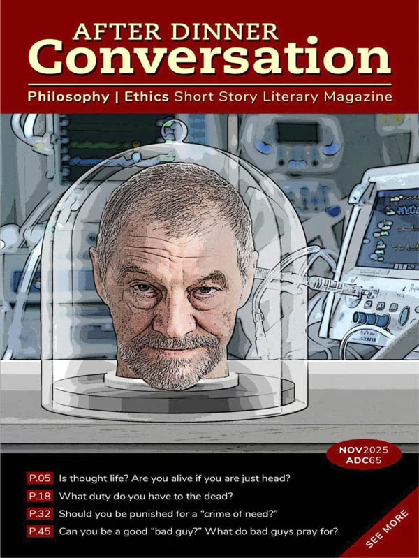 After Dinner Conversation publishes compelling “what if” scenarios of original philosophy and ethics short stories across genres with accompanying discussion questions for friends, family, and students. Imagine the “trolley problem” written as a short story! Topics include ethics, metaphysics, aesthetics, moral relativism, and political and economic philosophy among others.