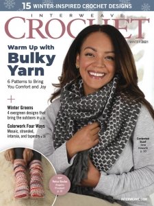 Interweave Crochet magazine offers innovative approaches to crochet, exploring both stitchwork and garment construction. Each issue offers at least twenty patterns, suitable for a range of crocheters from beginner to experienced. In addition, each issue features crochet tips, a review of yarn suited to crochet, and intriguing editorial about global crochet or other topics. Interweave Crochet is dedicated to engaging crocheters with timeless designs, supported by clear instructions, stitch diagrams, and crisp photography.