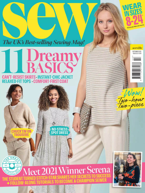 Every issue of Sew magazine comes with a free sewing pattern on dressmaker’s tissue. Be inspired with fashionable projects for your wardrobe and your home exclusively created by some of the UK’s leading stitching designers. Each project is presented in an informative, friendly and easy-to-follow style. Sew also comes with a 24-page essential pull-out Sew workbook including sewing information, stitch glossary and templates.