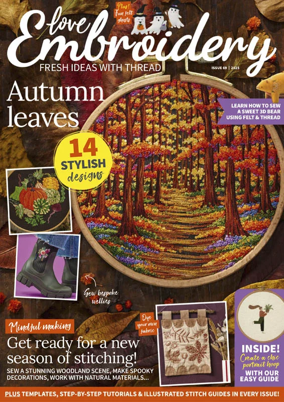 Love Embroidery is the monthly magazine that is a celebration of decorative stitch. It is full of creative ideas for anyone who loves – or would love to learn – modern hand and machine embroidery.