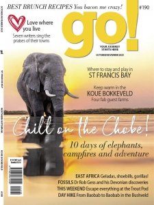 Go! - South Africa’s number one travel and outdoor lifestyle magazine. We pay our own way and tell it like it is. We drive back roads and speak to real people, giving you practical information about affordable destinations in southern Africa. Each issue is crammed with excellent photography, honest gear reviews and delicious recipes to make at home or in the bundu. Whether you’re looking to escape for a weekend or a month, your journey starts here.