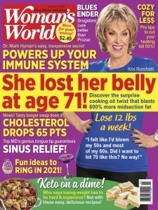 Want to be thinner, happier, healthier and less stressed? Welcome to Woman's World! Every page of this top-selling magazine is packed with great ideas for making your week easier and more fun! You'll find the latest weight-loss breakthroughs, easy money-saving tricks, mouthwatering recipes, inspiring real-life stories, family fun, and expert advice to help you live longer and look and feel your best!