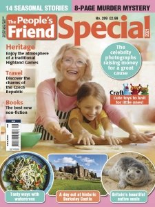 The People's Friend is a British weekly magazine founded in 1869 and currently published by D. C. Thomson & Co. Ltd. Its tagline is "The famous story magazine". The magazine is principally aimed at older women and is broadly traditionalist in outlook. Each issue contains at least six self-contained short stories and two serials (frequently more), a craft project (usually knitting or sewing) and various factual articles, one of which is a piece on a particular town. Pets, family and traditions are also common themes.