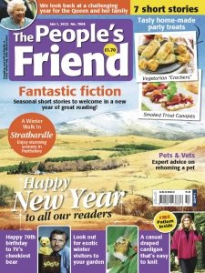 The People's Friend is a British weekly magazine founded in 1869 and currently published by D. C. Thomson & Co. Ltd. Its tagline is "The famous story magazine". The magazine is principally aimed at older women and is broadly traditionalist in outlook. Each issue contains at least six self-contained short stories and two serials (frequently more), a craft project (usually knitting or sewing) and various factual articles, one of which is a piece on a particular town. Pets, family and traditions are also common themes.