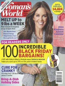Want to be thinner, happier, healthier and less stressed? Welcome to Woman's World! Every page of this top-selling magazine is packed with great ideas for making your week easier and more fun! You'll find the latest weight-loss breakthroughs, easy money-saving tricks, mouthwatering recipes, inspiring real-life stories, family fun, and expert advice to help you live longer and look and feel your best!